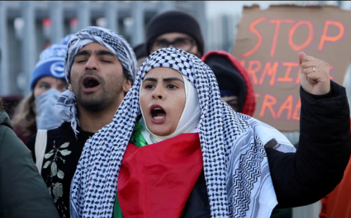ইসরায়েলের কাছে অস্ত্র বিক্রি বন্ধের দাবিতে কারখানার সামনে বিক্ষোভ